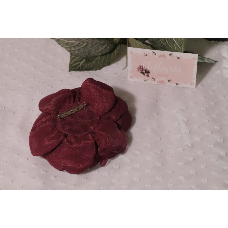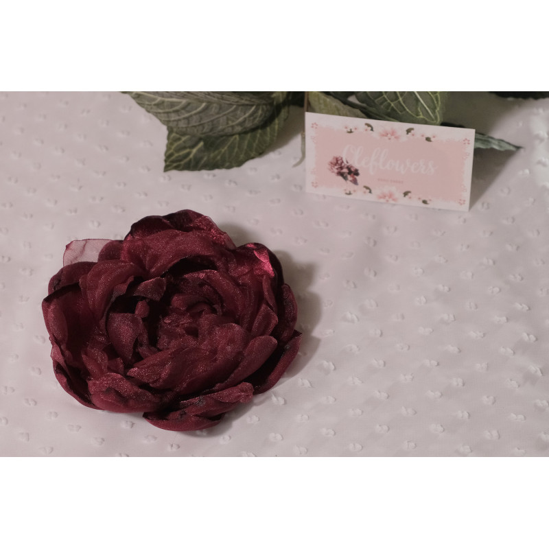 Aksesuārs izgatavots no satīna lentes un auduma, izmantojot kanzashi tehniku.