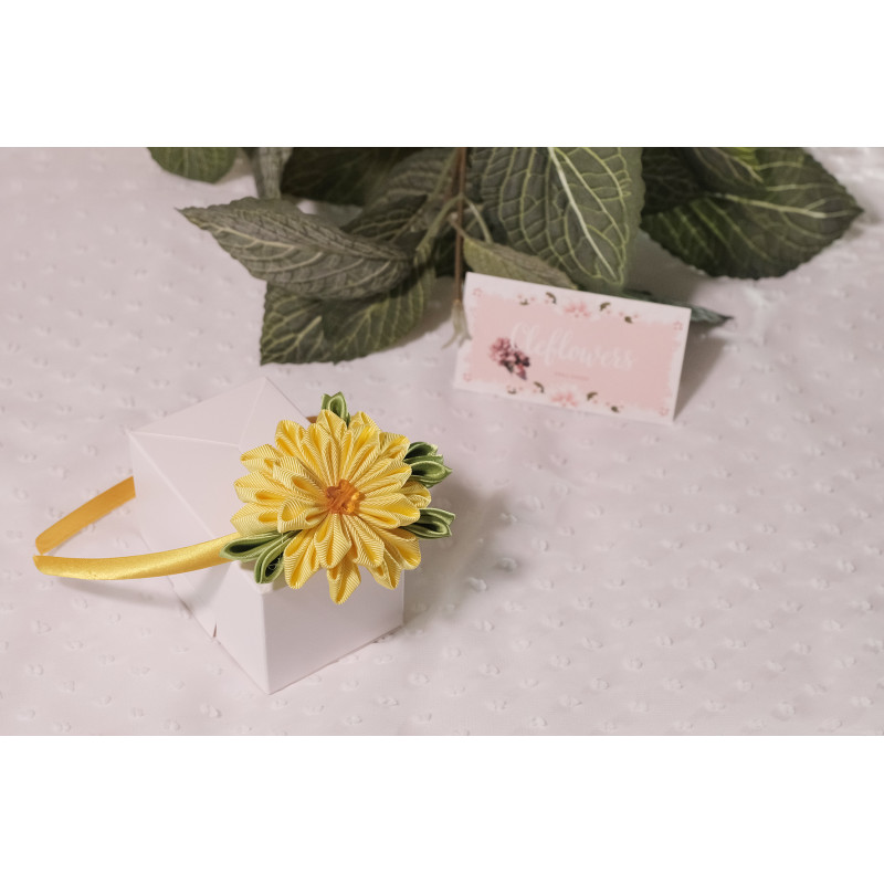Matu aksesuāri izgatavoti no satīna lentes, izmantojot kanzashi tehniku.