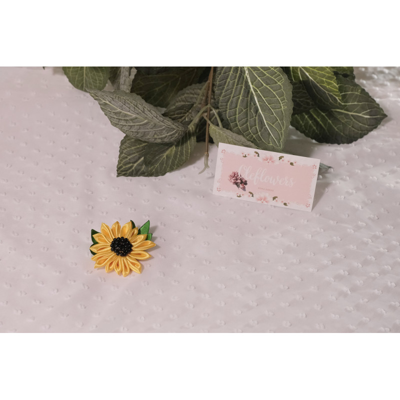 Matu aksesuārs izgatavots no satīna lentes un auduma, izmantojot kanzashi tehniku.