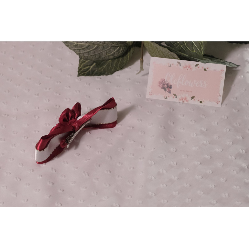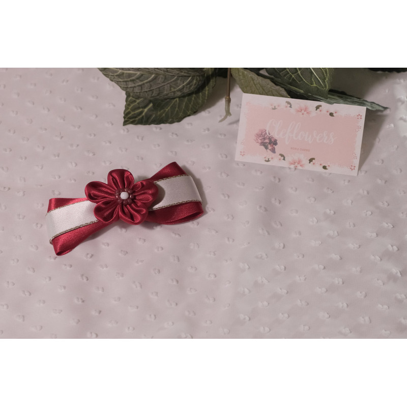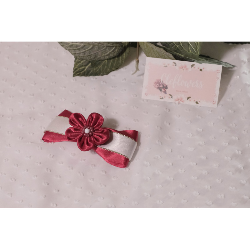 Matu aksesuārs izgatavots no satīna lentes un auduma, izmantojot kanzashi tehniku.