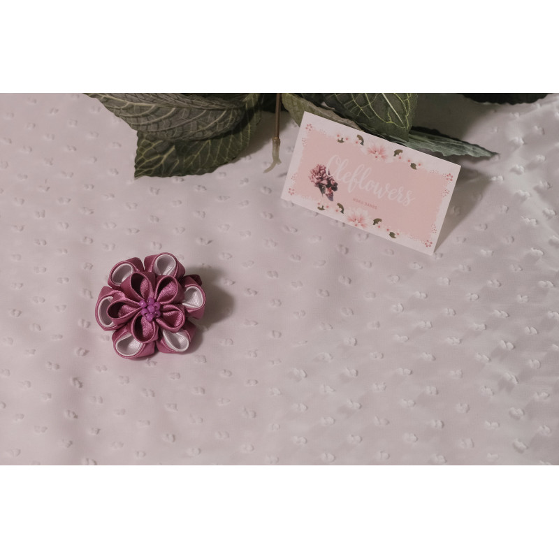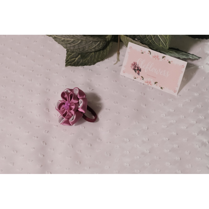 Matu gumijas izgatavotas no satīna lentes, izmantojot kanzashi tehniku.