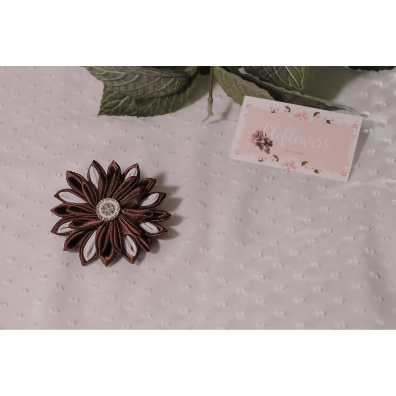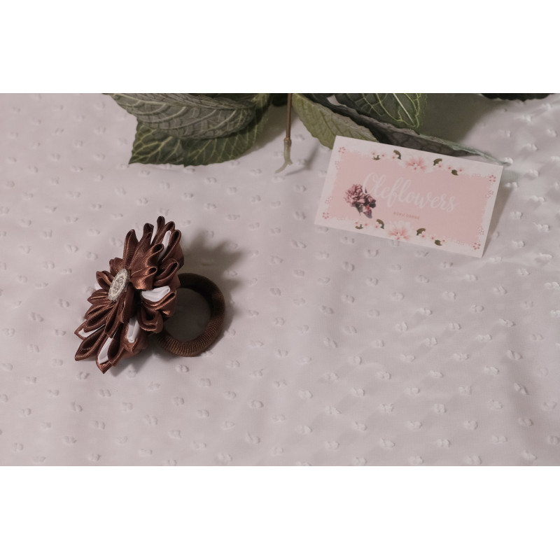 Matu gumijas izgatavotas no satīna lentes, izmantojot kanzashi tehniku.